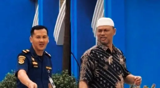 Ia tidak sendiri—terlihat didampingi seorang petugas Syahbandar.
